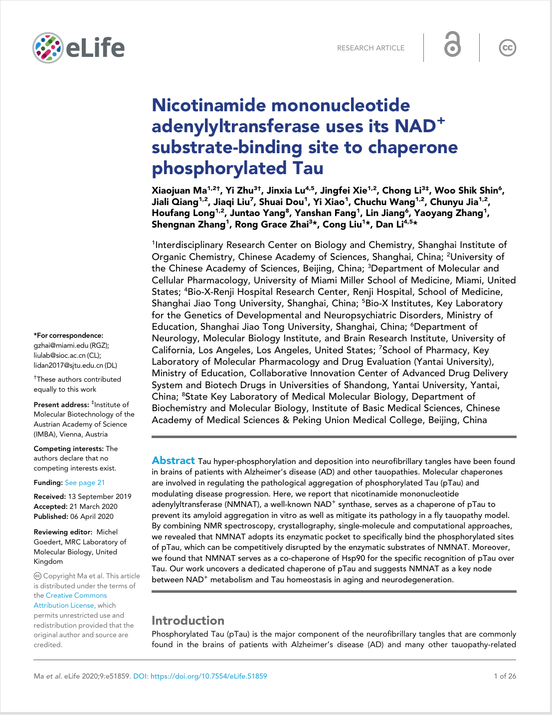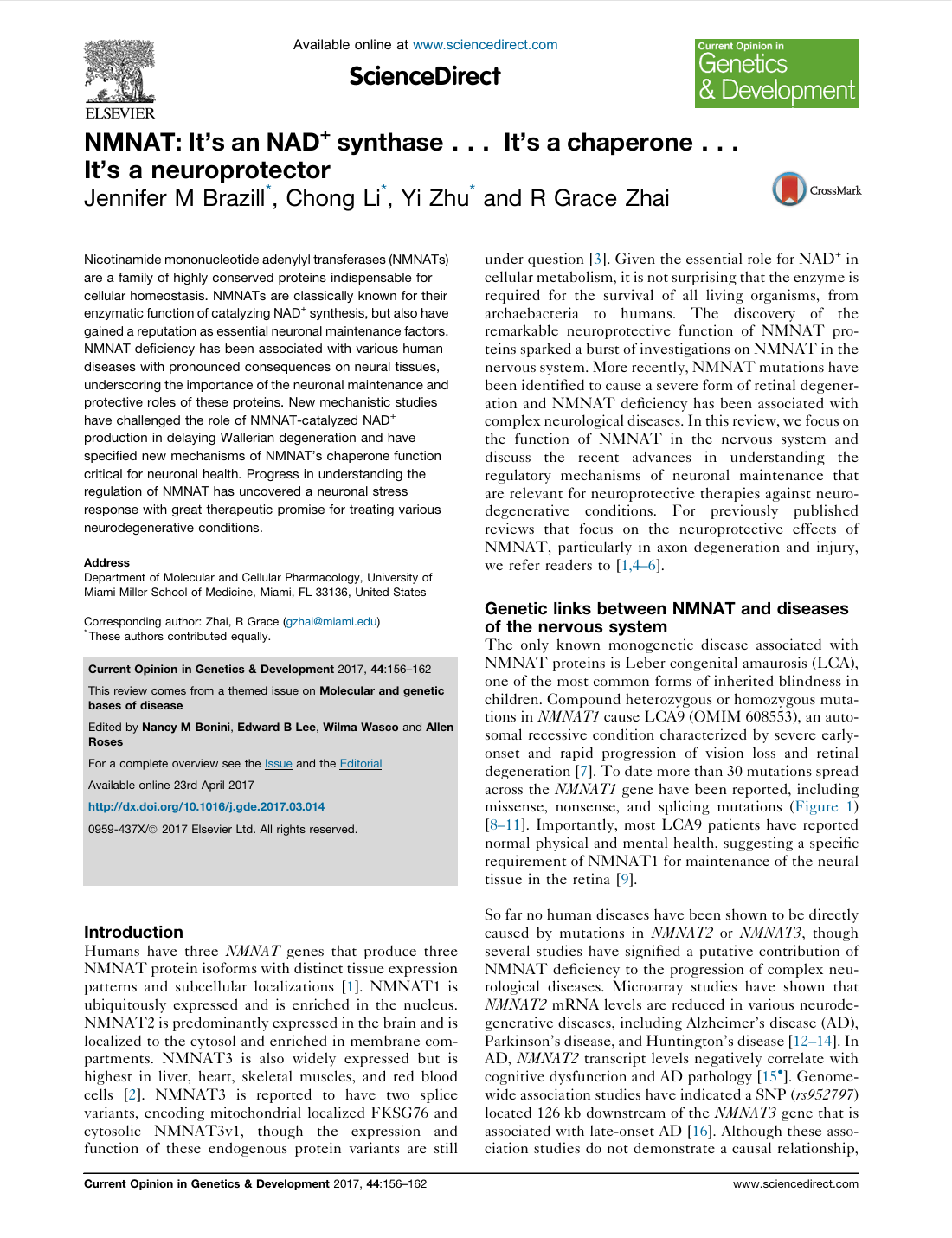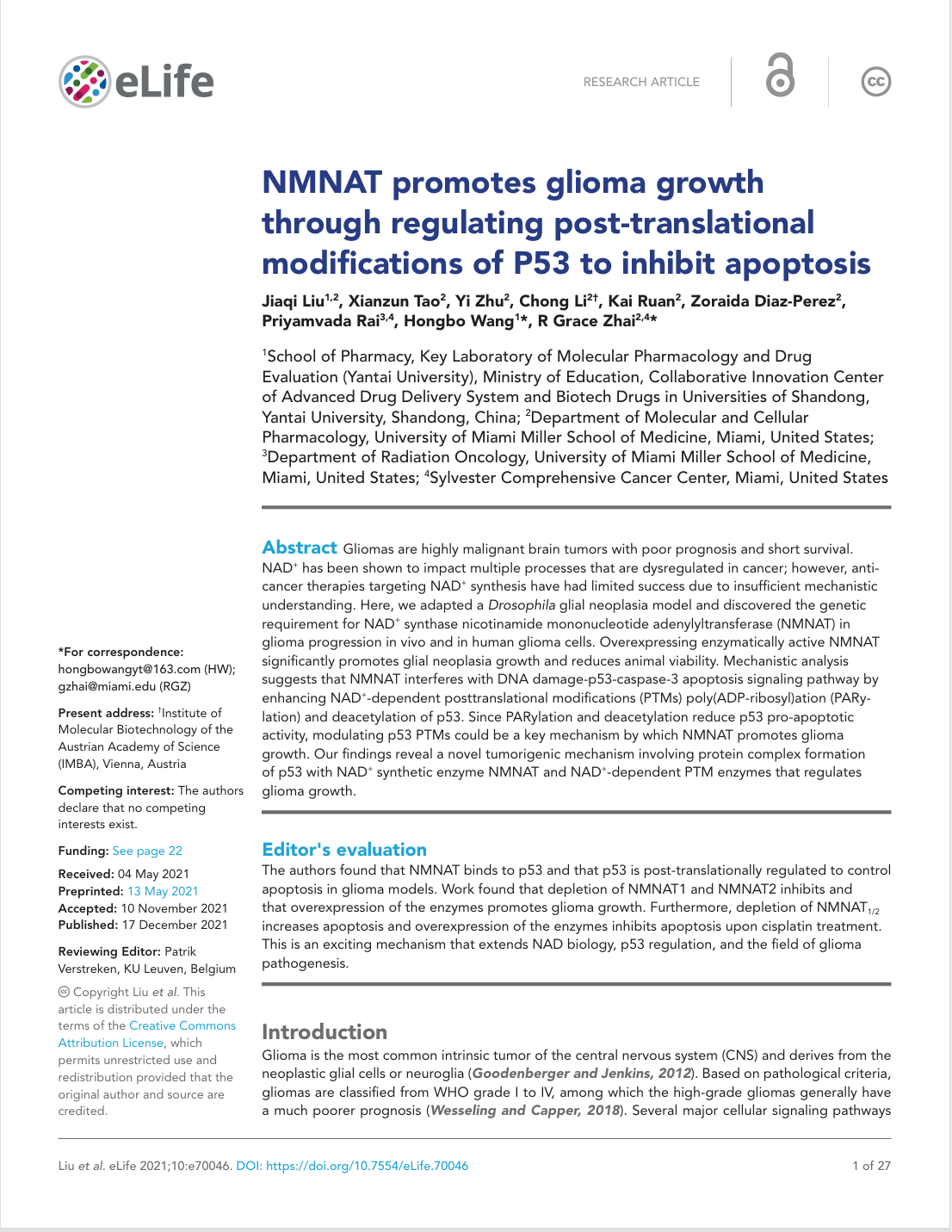 Brazill JM*, Li C*, Zhu Y*, Zhai RG (2017) NMNAT: It’s an NAD+ Synthase… It’s a chaperone… It’s a neuroprotector. Curr Opin Genetics Dev., 44:156–162. (*Equal contribution).